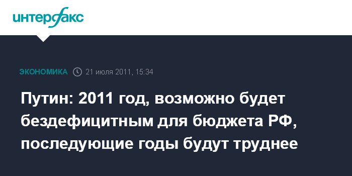 Путин: 2011 год, возможно будет бездефицитным для бюджета РФ, последующие годы будут труднее
