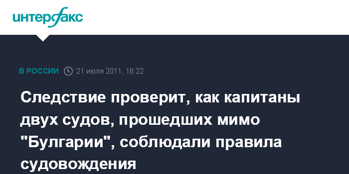 Следствие проверит, как капитаны двух судов, прошедших мимо "Булгарии", соблюдали правила судовождения