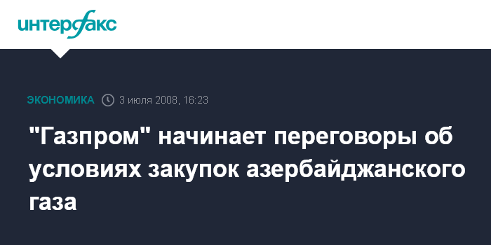 Москва. 3 июля. INTERFAX.RU - "Газпром" начинает переговоры с азербайджанскими партнерами по условиям закупки азербайджанского газа.