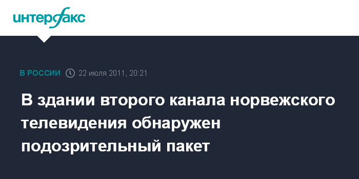 Осло. 22 июля. INTERFAX.RU - Из-за обнаружения подозрительного пакета в пятницу опечатано здание второго канала норвежского телевидения.