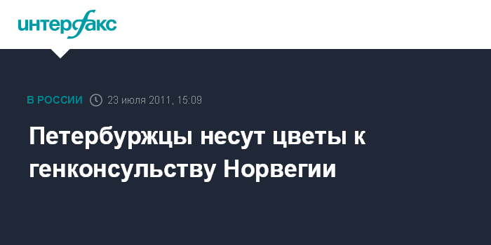 Санкт-Петербург. 23 июля. INTERFAX.RU - Жители Санкт-Петербурга приходят в субботу к генеральному консульству Норвегии, чтобы выразить соболезнования народу страны в связи с произошедшими терактами. Как передал корреспондент "Интерфакса", к зданию дипмиссии жители Петербурга приносят букеты цветов. Также у входа в консульство зажжены поминальные свечи. Несмотря на субботний день двери генконсульства открыты.