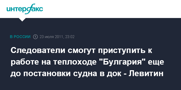Следователи смогут приступить к работе на теплоходе "Булгария" еще до постановки судна в док - Левитин