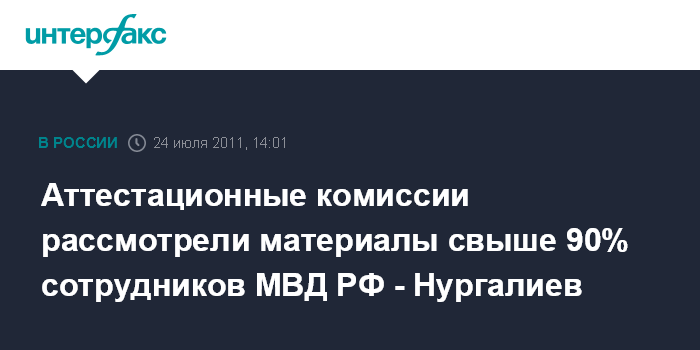 Аттестационные комиссии рассмотрели материалы свыше 90% сотрудников МВД РФ - Нургалиев