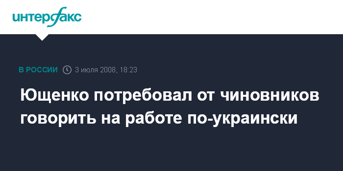 Москва. 3 июля. INTERFAX.RU - Президент Украины Виктор Ющенко требует, чтобы все государственные служащие соблюдали закон о государственном языке и говорили на украинском языке при исполнении своих обязанностей. "Как президент, я хотел бы обратиться ко всем государственным служащим: я требую, чтобы вы выполняли закон о государственном языке. Все остальные - это их право, право выбирать", - завил Ющенко в четверг в Киеве на всеукраинском форуме "Власть и бизнес - партнеры".