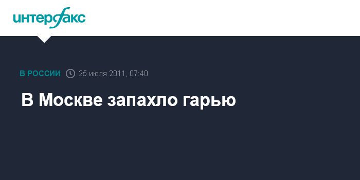 Москва. 25 июля. ИНТЕРФАКС - Четко уловимый едкий запах дыма, который трудно спутать с выхлопными газами автомобилей, ощущается в утренние часы понедельника на юго-востоке Москвы.