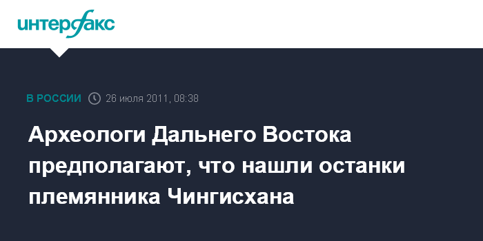 Археологи Дальнего Востока предполагают, что нашли останки племянника Чингисхана