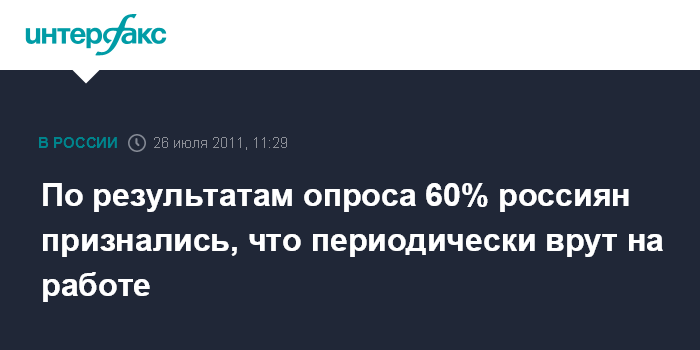 По результатам опроса 60% россиян признались, что периодически врут на работе