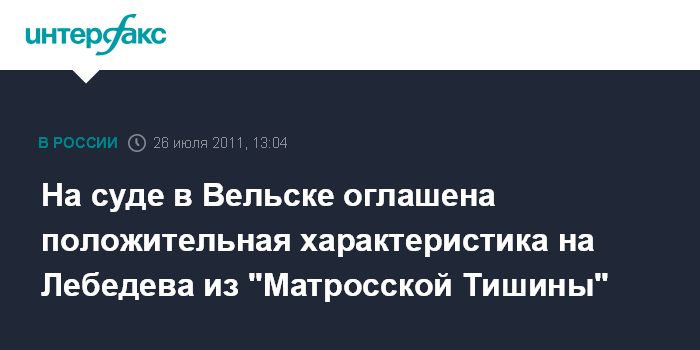 На суде в Вельске оглашена положительная характеристика на Лебедева из "Матросской Тишины"
