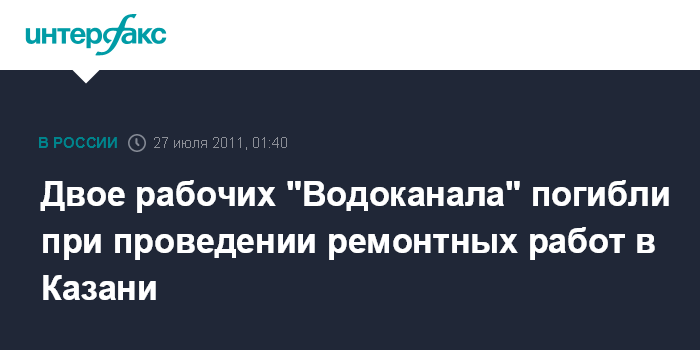 Казань. 27 июля. ИНТЕРФАКС-ПОВОЛЖЬЕ - Правоохранительные и следственные органы устанавливают причину гибели двоих рабочих МУП "Водоканал" в одном из канализационных колодцев по улице Мавлютова в Казани.