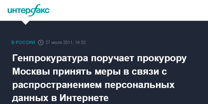 Генпрокуратура поручает прокурору Москвы принять меры в связи с распространением персональных данных в Интернете