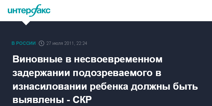 Виновные в несвоевременном задержании подозреваемого в изнасиловании ребенка должны быть выявлены - СКР