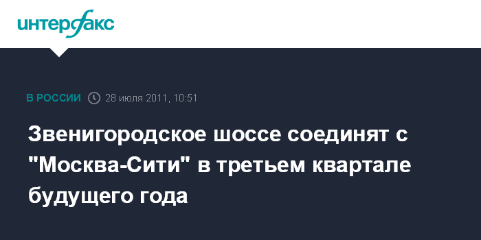 "Строительные работы на транспортной магистрали, соединяющей Звенигородское шоссе с северным входом делового центра "Москва-Сити", будут завершены в третьем квартале 2012 года", - сказал Бочкарев.