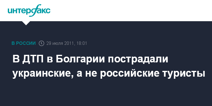 Москва. 29 июля. INTERFAX.RU - В Болгарии в автоаварию в пятницу попали украинские, а не российские туристы, сообщил генеральный консул посольства РФ в Варне Юрий Соловьев.