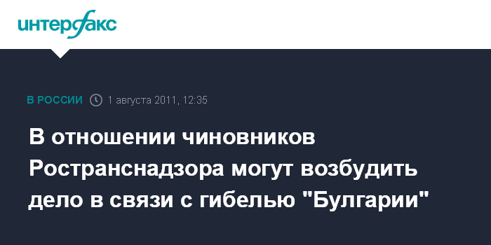 В отношении чиновников Ространснадзора могут возбудить дело в связи с гибелью "Булгарии"