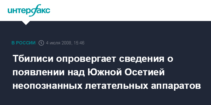 Тбилиси опровергает сведения о появлении над Южной Осетией неопознанных летательных аппаратов