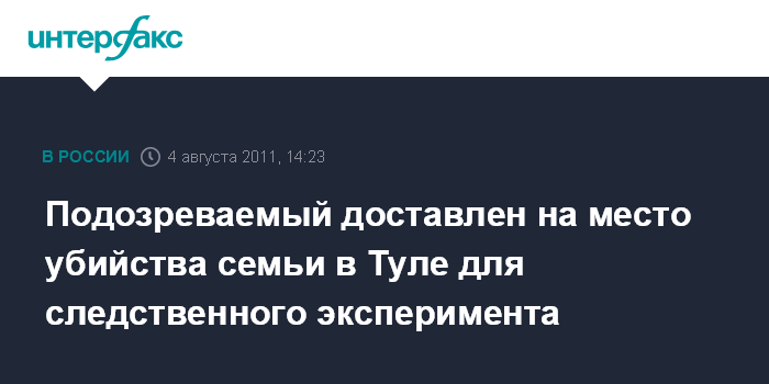 Тула. 4 августа. INTERFAX.RU - На место убийства семьи из пяти человек в Туле для проведения следственного эксперимента доставлен подозреваемый в совершении тяжкого преступления.