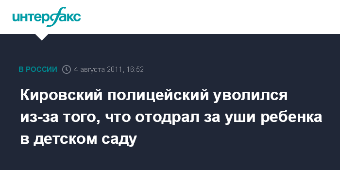 Кировский полицейский уволился из-за того, что отодрал за уши ребенка в детском саду