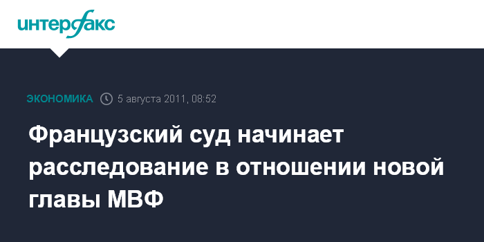 5 августа. INTERFAX.RU - Французский суд принял решение начать расследование в отношении новой главы Международного валютного фонда (МВФ) Кристин Лагард по обвинению в превышении должностных полномочий.
