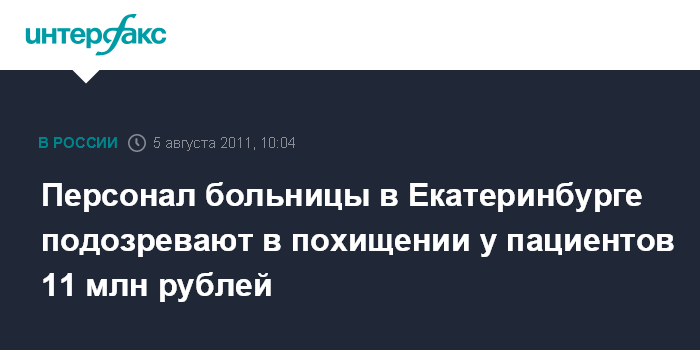 Персонал больницы в Екатеринбурге подозревают в похищении у пациентов 11 млн рублей