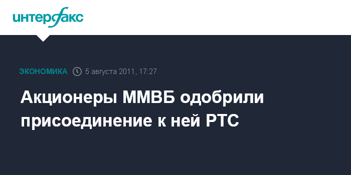 Москва. 5 августа. INTERFAX.RU - Акционеры ЗАО "ММВБ" на внеочередном собрании в пятницу одобрили реорганизацию в форме присоединения к ММВБ биржи РТС, сообщил агентству "Интерфакс-АФИ" один из участников собрания.