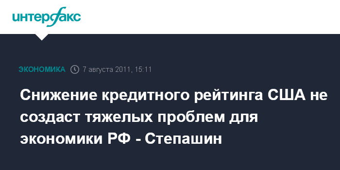 Снижение кредитного рейтинга США не создаст тяжелых проблем для экономики РФ - Степашин