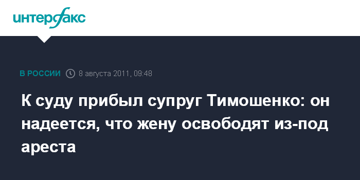 Киев. 8 августа. INTERFAX.RU - Супруг экс-премьера Украины, лидера партии "Батькивщина" Юлии Тимошенко Александр прибыл в понедельник к зданию Печерского районного суда, чтобы увидеться со своей женой. Он надеется, что ей изменят меру пресечения.