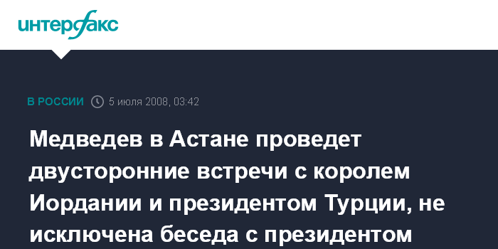 Медведев в Астане проведет двусторонние встречи с королем Иордании и президентом Турции, не исключена беседа с президентом Грузии