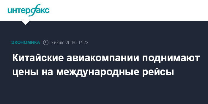 В сообщении указывается, что в различной степени подорожают билеты китайских перевозчиков практически в страны всех континентов мира. Например, цена билета в один конец в азиатские регионы России повысится на 130 юаней ($19). Сейчас введенная ранее наценка на топливо, включенная в стоимость этих билетов, составляет 420 юаней ($62), а с 10 июля поднимется до 550 юаней ($81).