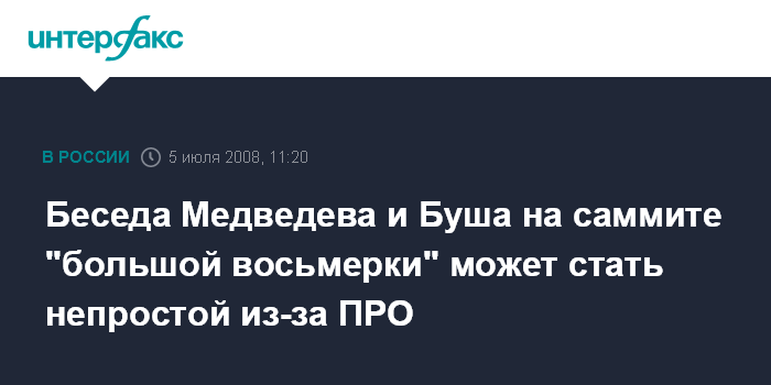 Беседа Медведева и Буша на саммите "большой восьмерки" может стать непростой из-за ПРО