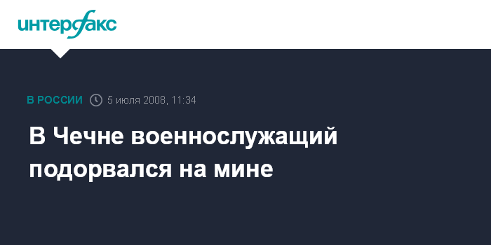 Москва. 5 июля. NTERFAX.RU - В горах на юге Чечни на мине подорвался военнослужащий одного из подразделений Минобороны РФ, сообщили Интерфаксу в субботу в правоохранительных органах республики.
