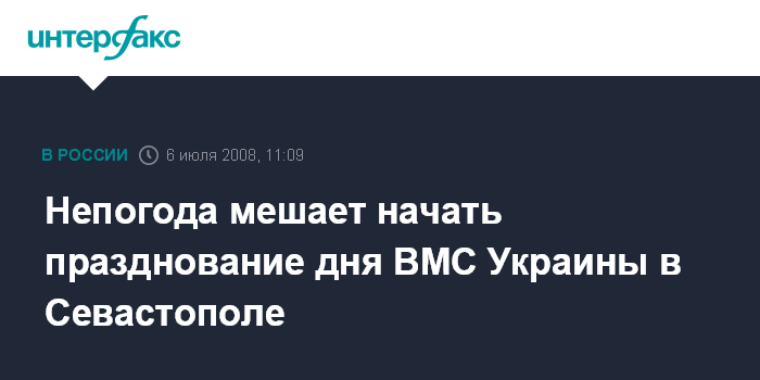 Москва. 6 июля. INTERFAX.RU - В Севастополе празднование 16-летия Военно-Морских сил Украины перенесено на один час в связи с непогодой.
