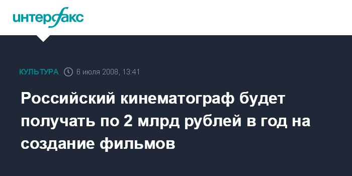 "Планируется, что в целом на кинопроизводство со следующего года будет выделяться 4 млрд рублей ежегодно, из них 2 млрд - на создание фильмов", - сообщил А.Голутва "Интерфаксу".