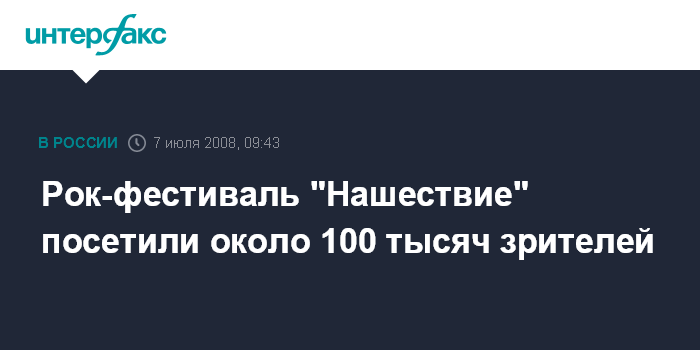 Москва. 7 июля. INTERFAX.RU - Рок-фестиваль "Нашествие", который завершается вечером в воскресенье в поселке Эммаус под Тверью, за три дня посетили около 100 тыс. зрителей, сообщил на пресс-конференции продюсер фестиваля Леонид Ланда.