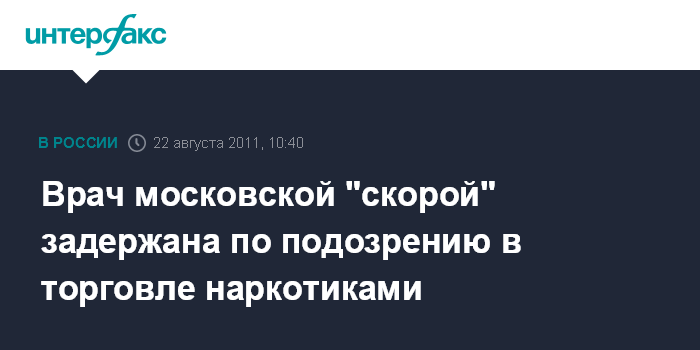 Москва. 22 августа. INTERFAX.RU - Сотрудница столичной "скорой помощи" задержана по подозрению в торговле наркотиками, сообщили "Интерфаксу" в пресс-службе ГУ МВД России по Москве.