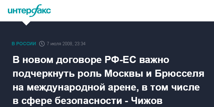 В новом договоре РФ-ЕС важно подчеркнуть роль Москвы и Брюсселя на международной арене, в том числе в сфере безопасности - Чижов