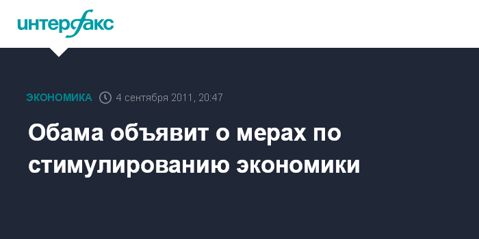 Вашингтон. 4 сентября. ИНТЕРФАКС - Президент Барак Обама, выступая в четверг перед обеими платами Конгресса, как ожидается, представит меры по стимулированию экономического роста и рынка труда в США, сообщает агентство Bloomberg.