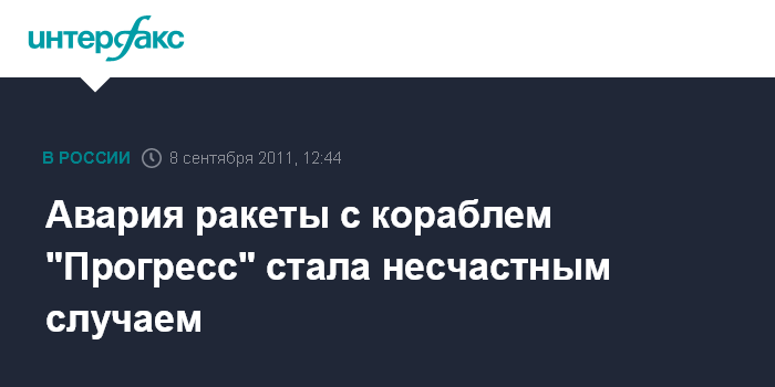 Авария ракеты с кораблем "Прогресс" стала несчастным случаем