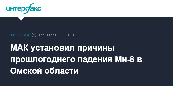 Новосибирск. 8 сентября. INTERFAX.RU - Комиссия Межгосударственного авиационного комитета обнародовала результаты расследования катастрофы вертолета Ми-8 в Омской области, в которой в ноябре прошлого года погибли 8 пассажиров.