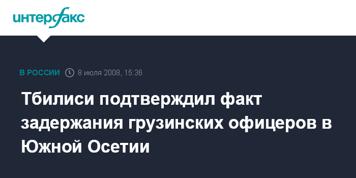 По его словам, грузинские власти сделают все возможное для освобождения захваченных офицеров. Ранее власти Южной Осетии сообщили, что на территории непризнанной республики минувшей ночью были задержаны четверо человек в военной форме Вооруженных сил Грузии, которые занимались организацией работы артиллерийских корректировщиков огня.