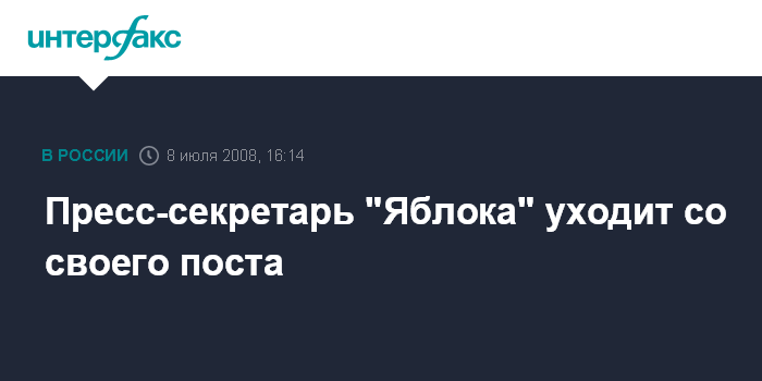 Москва. 8 июля. INTERFAX.RU - Пресс-секретарь партии "Яблоко" Евгения Диллендорф, занимавшая эту должность в течение многих лет, разочаровалась в нынешней журналистике и решила оставить пост.