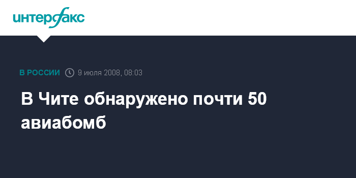 Москва. 9 июля. INTERFAX.RU - В Чите продолжаются работы по уничтожению 46 авиабомб, найденных на берегу реки. Сообщение об обнаружении первых 8 авиабомб на реке Ингода в Черновском районе Читы поступило в управление МЧС от оперативного дежурного краевого ГУВД в понедельник вечером, сообщает Сибирский региональный центр МЧС. На месте работает оперативная группа Главного управления МЧС России по Читинской области. В работе задействовано 17 человек и 8 единиц техники.