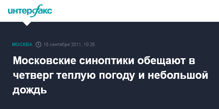Московские синоптики обещают в четверг теплую погоду и небольшой дождь