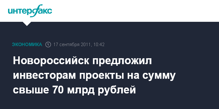 Сочи. 17 сентября. INTERFAX.RU - Новороссийск представил на Международном инвестиционном форуме "Сочи-2011" 17 проектов на общую сумму свыше 70 млрд рублей, сообщил агентству "Интерфакс-Юг" мэр города Владимир Синяговский в ходе проведения форума в Сочи в субботу.