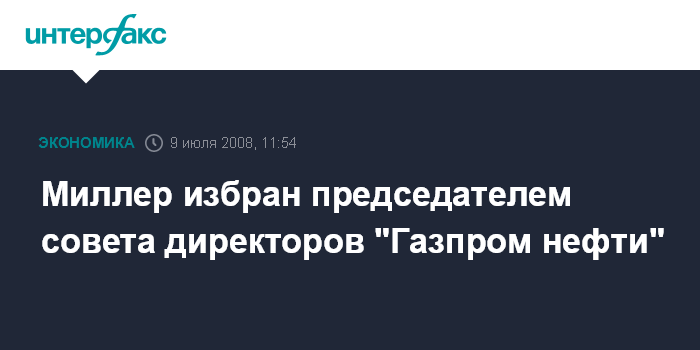 Москва. 9 июля. INTERFAX.RU - Совет директоров ОАО "Газпром нефть" 7 июля избрал председателем главу правления ОАО "Газпром" Алексея Миллера, сообщила пресс-служба "Газпром нефти".