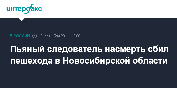 Новосибирск. 19 сентября. INTERFAX.RU - В Каргатском районе Новосибирской области автомобиль, за рулем которого находился сотрудник следственного комитета РФ, сбил насмерть человека, сообщил агентству "Интерфакс-Сибирь" источник в правоохранительных органах региона.