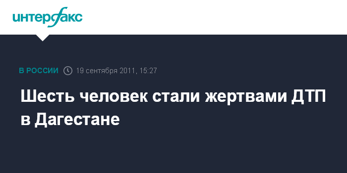 Пятигорск. 19 сентября. INTERFAX.RU - В Дагестане в понедельник днем в результате столкновения КамАЗа и автомобиля ВАЗ погибли шесть человек, сообщили агентству "Интерфакс-Юг" в пресс-службе республиканского управления МЧС.