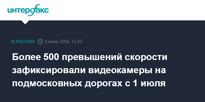 Москва. 9 июля. INTERFAX.RU - Комплексы видеофиксации нарушений правил дорожного движения, установленные на подмосковных магистралях, зафиксировали с начала июля около 550 нарушений скоростного режима, сообщил начальник УГИБДД по Московской области Сергей Сергеев на пресс-конференции в центральном офисе "Интерфакса" сегодня.