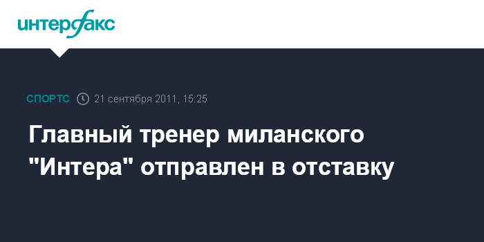 Москва. 21 сентября. INTERFAX.RU - 53-летний Джанпьеро Гасперини покинул пост главного тренера итальянского футбольного клуба "Интер".