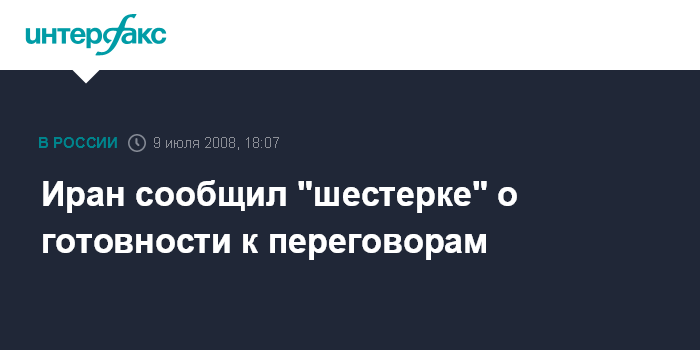 "Сигнал, который мы получили из Ирана, если взять его квинтэссенцию - это готовность к переговорам", - сказал Кисляк в интервью "Интерфаксу" в среду. Высокопоставленный российский дипломат подчеркнул, что "российская сторона была к этому готова". "Мы всегда считали, что единственный путь урегулирования иранской проблемы - политический, а для этого нужен серьезный диалог", - отметил замглавы МИД РФ.