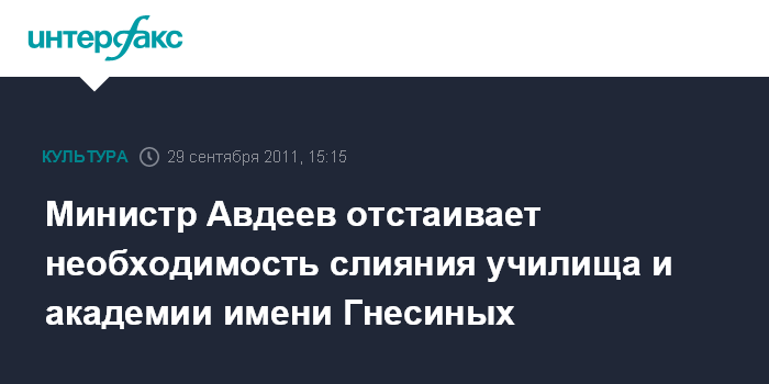 Москва. 29 сентября. INTERFAX.RU - Объединение училища и академии имени Гнесиных улучшит качество образования обучающихся, заявил министр культуры России Александр Авдеев.